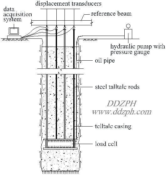 The pressure in the load cell is measured by pressure gauges and the displacements are measured by electronic displacement transducers which are connected to the load cell by telltale rod embedded into the pile. When loaded the load cell expands, pushing the upper shaft upwards and the lower shaft downwards, which would mobilize the side resistance and base resistance of the upper and lower lengths of the pile. According to relationship between the movement and their corresponding S-lgt and s-lgQ curves, bearing capacities of both upper and lower portion of the pile can be determined. Adding up the modified side resistance of upward pile shaft and the base resistance of downward pile shaft makes up the total ultimate bearing capacity of the pile.