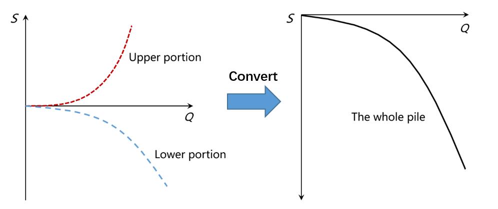 There is only one load-displacement curve for single pile in the traditional load testing which has two curves including upward and downward in bi-directional method. Hence, equivalent conversion should be made, and this is the core why it can be applied widely.