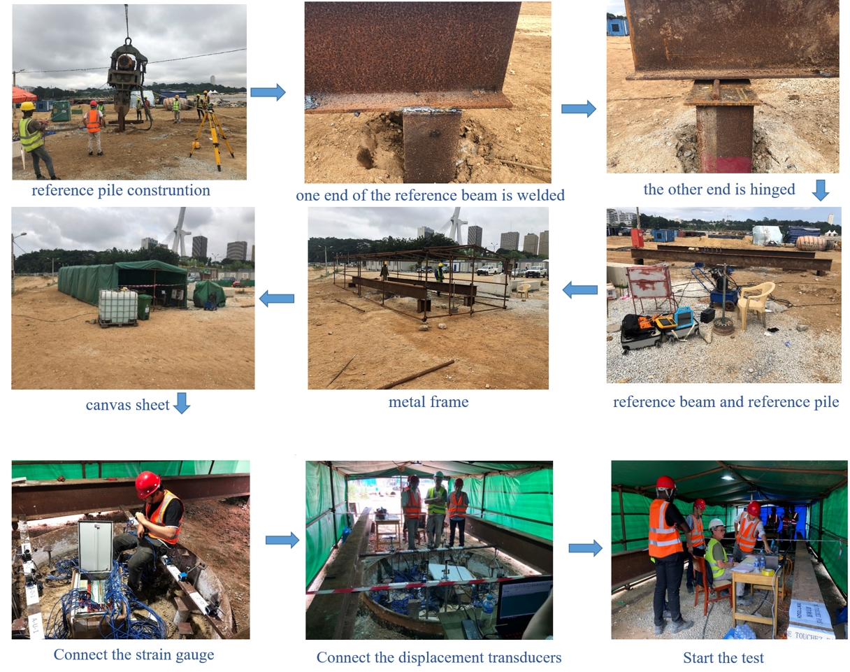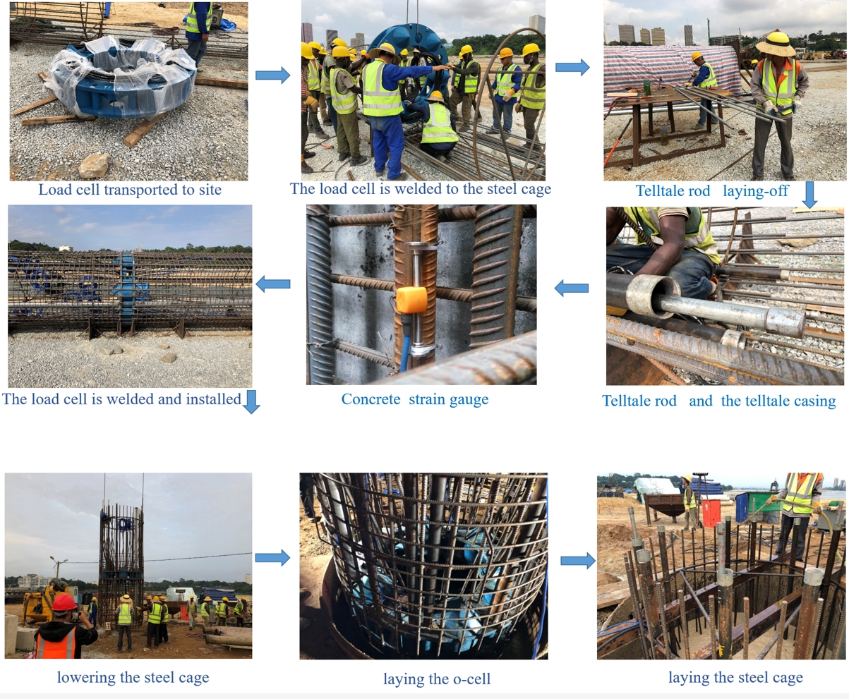 For the double-load cell pile testing, tests were conducted both before and after grouting, with the entire process taking approximately 60 days.
